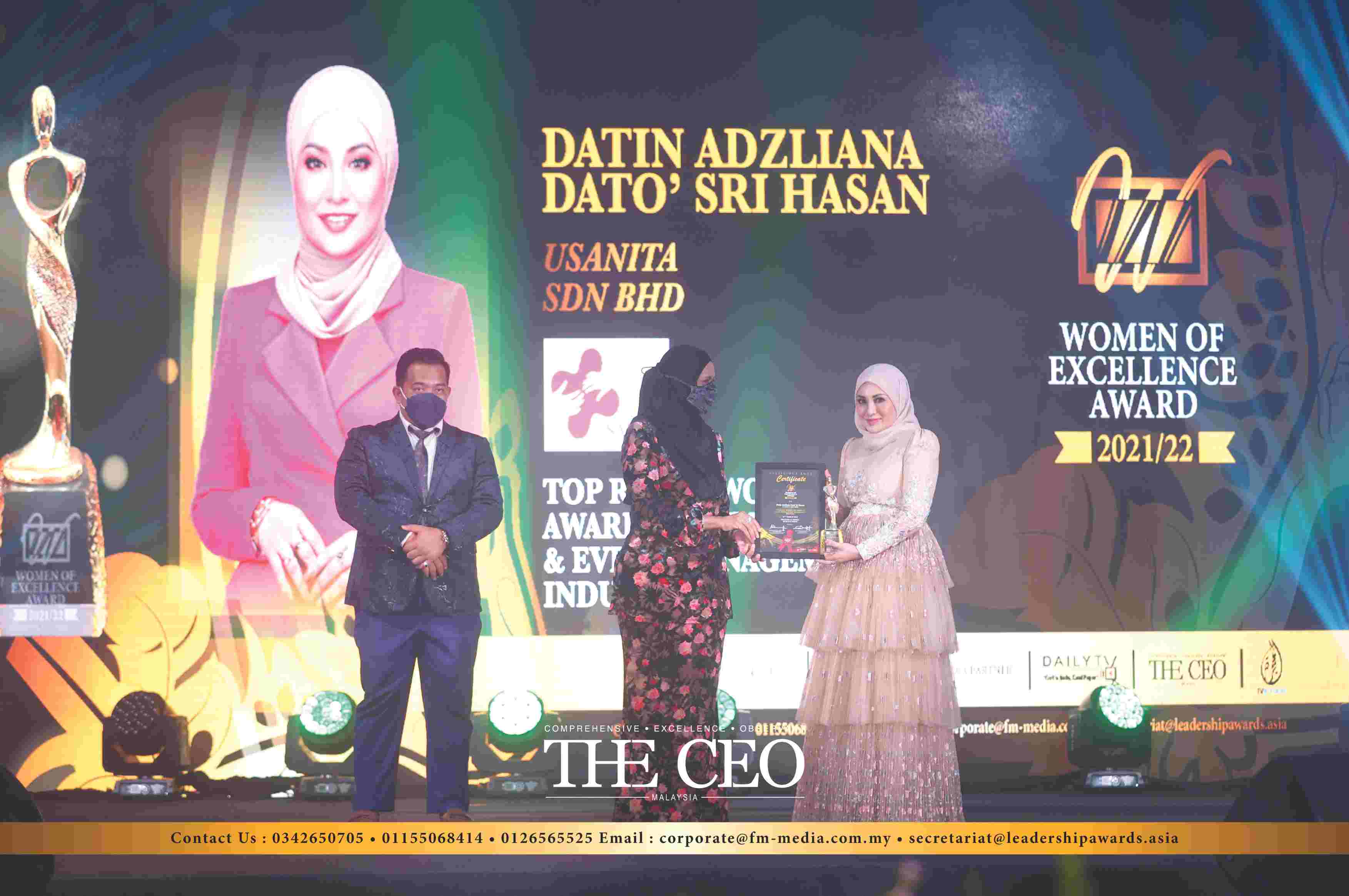 SUKU pertama 2022 mencatat kenangan manis buat Usanita Sdn Bhd apabila Ketua Pegawai Eksekutifnya, Datin Adzliana Prof Dato Sri Dr Hasan menerima anugerah kecemerlangan Women of Excellence Awards 2021/22 (WOEA) bagi kategori Top Rising Women CEO Award in Publication & Event Management Industry, pada 24 Mac lalu.